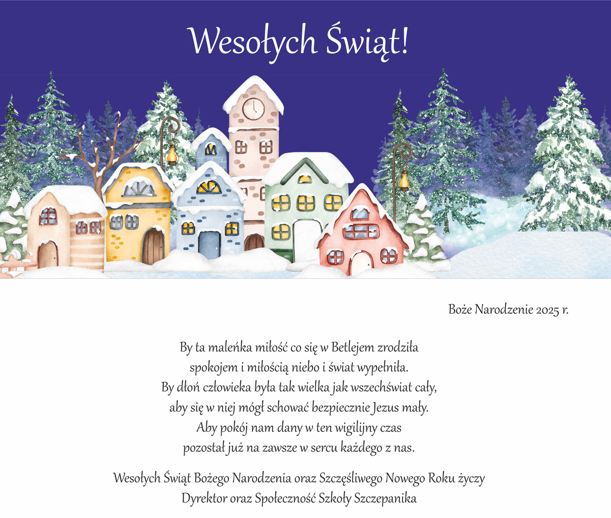 UWAGA! Od dnia 15 grudnia 2025 r. (poniedziałek), ulega zmianie plan lekcji. Aktualny plan lekcji można sprawdzić na stronie szkoły i w e-dzienniku. Prosimy o zapoznanie się ze zmianami.